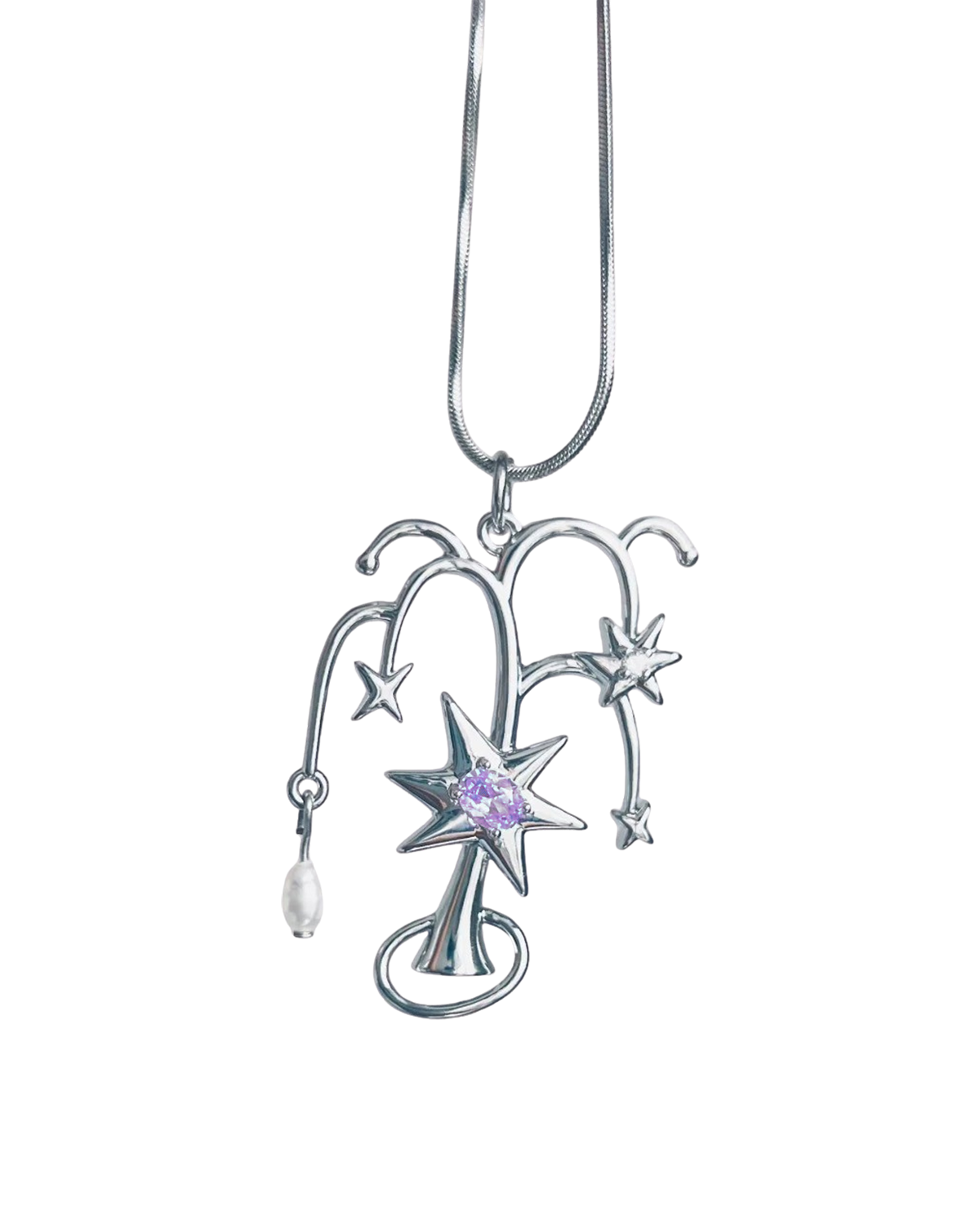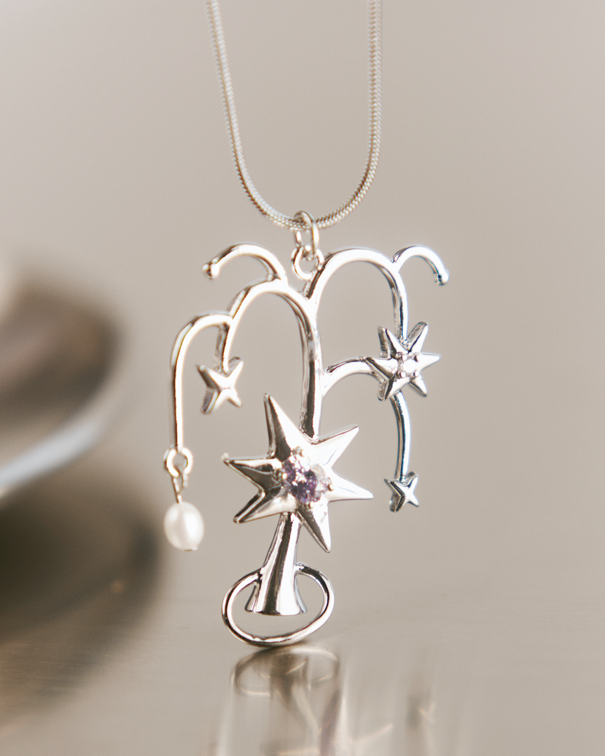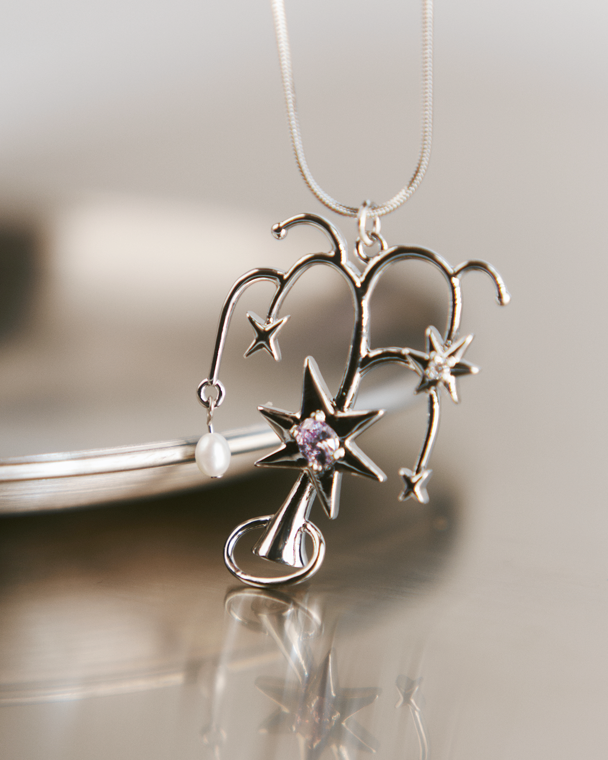 Crafted in white-gold plated brass with a touch of glimmering zircon and pearl, it's a gentle reminder that dreams might just grow into galaxies.