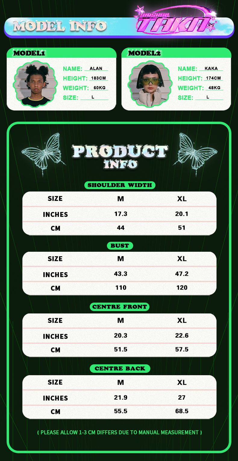 TAKA Original embraces an anime - inspired aesthetic with this black &neon green slogan tactical vest featuring a v-neck, a side fastening and a cropped length. Vest itself defined by its oversized silhouette, Boasting green digital print logo to the front and contrast stitching, TAKA Original at the front needs no introduction. With Highlights:Black. Sleeveless.V-neck.Side zip fastening. Adjustable sliding fastening. When buying this item, keep in mind that we suggest you check out side suggest or contact our customer service directly if you are not sure what size you should get.