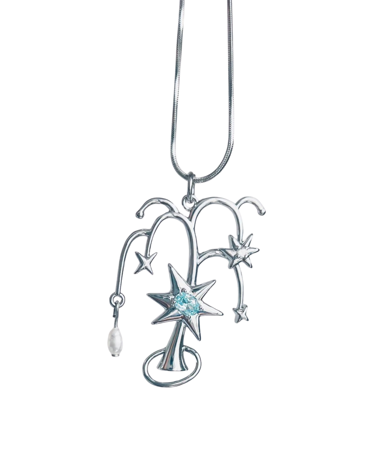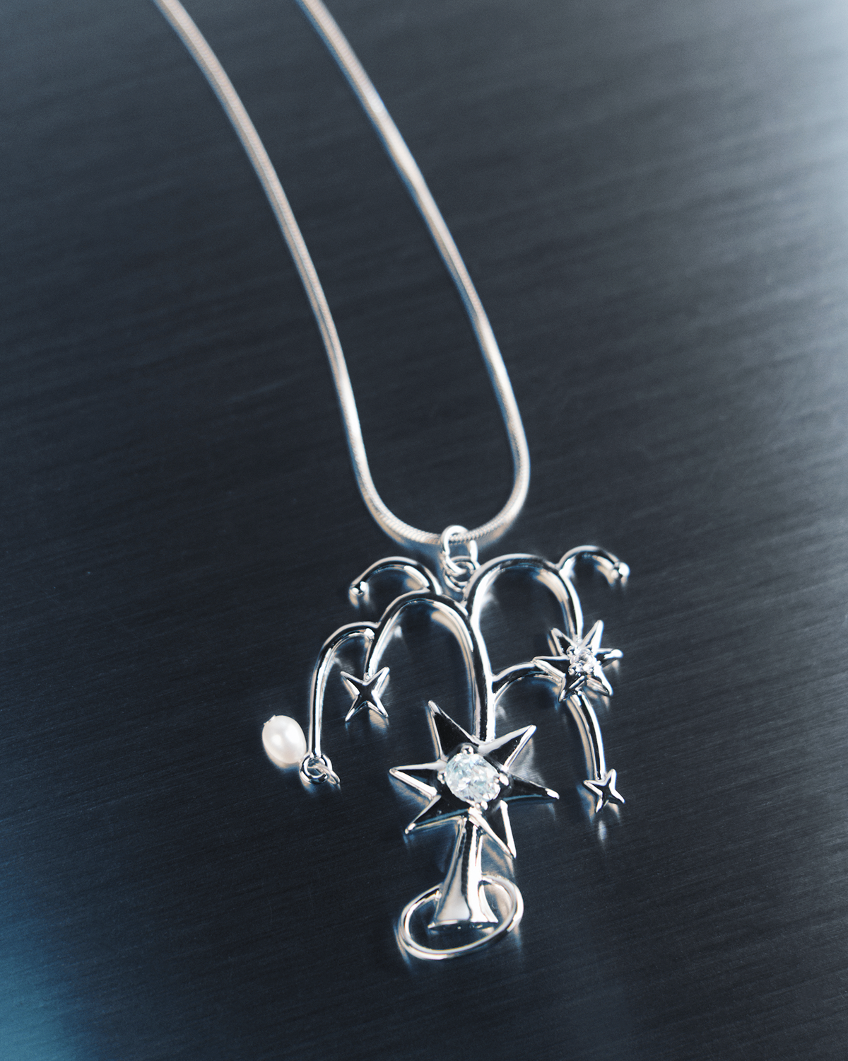 Crafted in white-gold plated brass with a touch of glimmering zircon and pearl, it's a gentle reminder that dreams might just grow into galaxies.