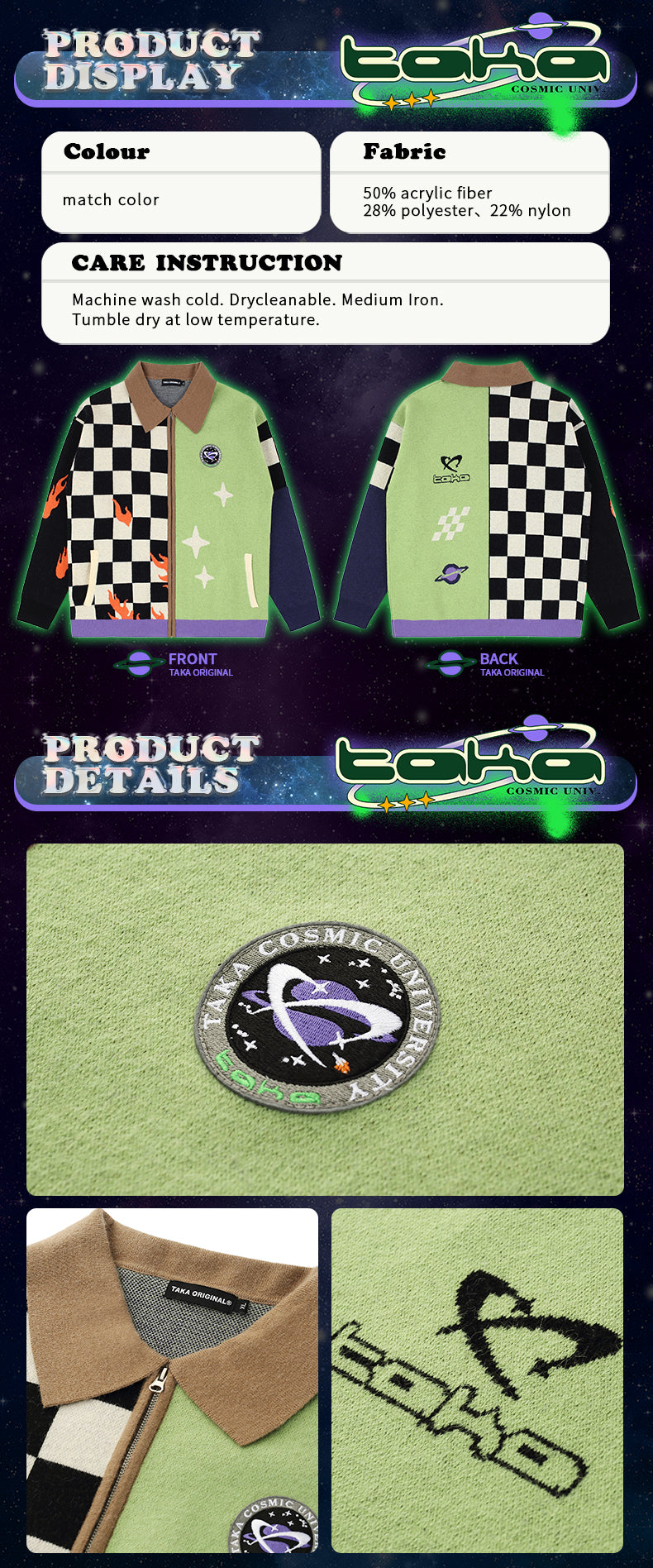 TAKA Original Cosmic Univ. flaming checkboard zipped knitted cardigan