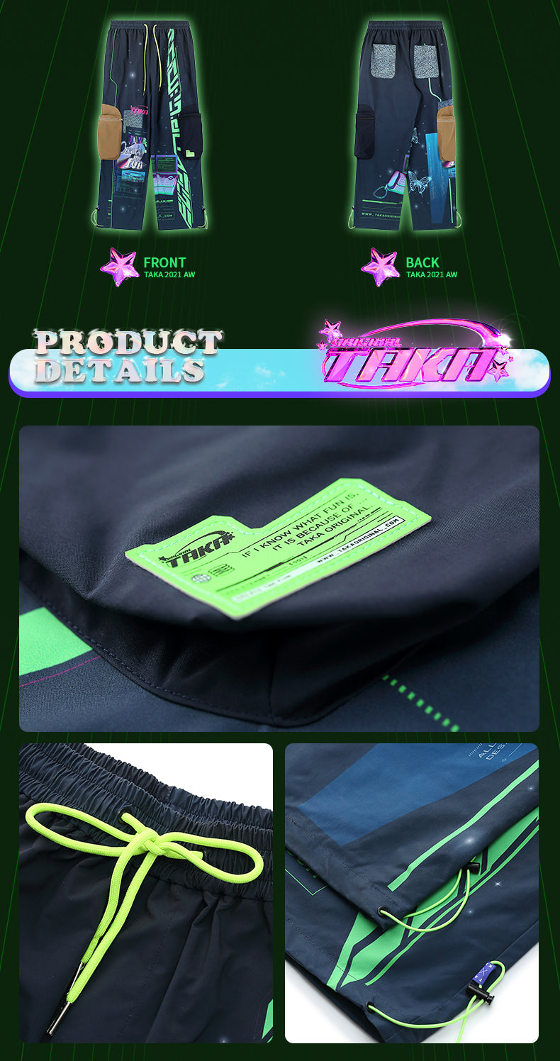 In this collection we gather anime cyber retro y2k atheistic and put them on this [ Eternet 001 ] Cargo pants at the same time. The only thing better than feeling comfortable is representing while doing it. Cut with straight leg and detailed all over the pants. Waist and bottoms with elastic. These cargo pants from TAKA Original prove you can cross both off your list. Anime combine streetwear.